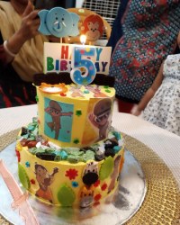 Amazingly yummy Mango flavored cake with not so much cream and loads of chocolate. With desired prints of Chota Bheem and Little Singham on it, it was loved by all.